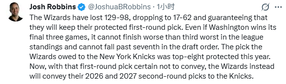 奇才队今年的首轮选秀权本已被交易至尼克斯队,但附带前8顺位保护。由于这个首轮签被保护,奇才队将把2026年和2027年的次轮签送至尼克斯队手中。