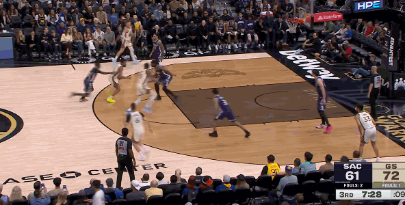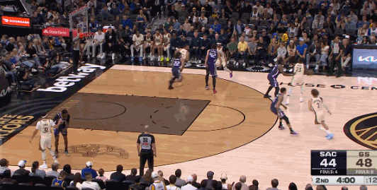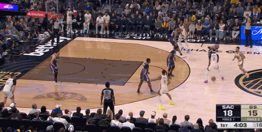 易边再战,雷诺连得4分,梅尔顿中投命中,波杰姆斯基上篮得手,巴锡空接扣篮。雷诺又连得4分,小佩顿也很快做出回应,连投带罚,一人连得6分。海耶斯、斯宾塞互飙三分,巴锡补篮得分,勇士领先13分。克利福德抛投命中,卡德威尔补篮,海耶斯三分再中,国王一波9-0,把分差缩小到4分。三节战罢,勇士85-81领先国王。