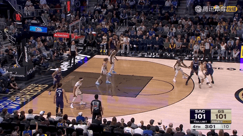 第四节还剩2分53秒时,迈克德莫特外线命中,国王以104:101占先;还剩2分38秒,库里三分立刻回敬将比分追至104:104。