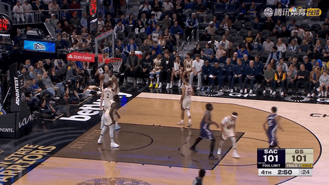 还剩1分39秒时,塞斯-库里两罚全中,将比分改写为104:109。还剩1分25秒时,迈克德莫特失误被格林抢断,国王错失追分良机。