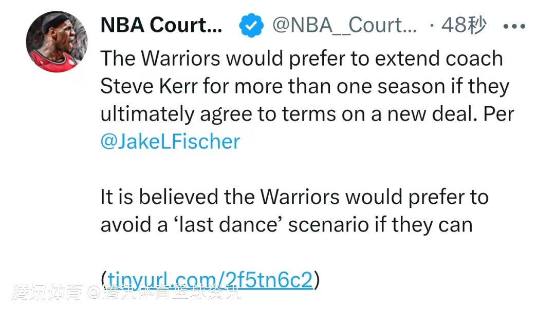 北京时间4月8日,据名记Jake Fischer消息,如果勇士最终与主教练科尔达成续约,球队更希望签下一份超过一年的合同。