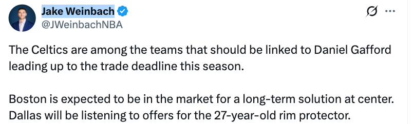 北京时间12月29日,据美记Jake Weinbach报道,交易截止日前,凯尔特人是与加福德产生关联的球队之一。绿军方面预计会寻求五号位的长期解决方案,而独行侠将听取针对加福德的报价。