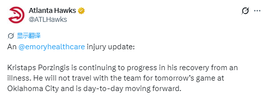 北京时间12月29日,尽管老鹰队中锋波尔津吉斯将继续缺席球队对阵雷霆的比赛,但他的复出之日已近在眼前。据球队官方消息,波尔津吉斯正从疾病中逐步恢复,目前已被列入每日观察名单。