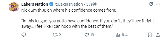 史密斯表示:“其实当我看到里夫斯受伤时,我就大概猜到了。我觉得最重要的就是时刻做好准备,在非比赛日也专注于打磨自己的技术。教练团队一直在帮助我,确保我能做好准备,他们确实花了很多心思帮我提升状态。我签的是双向合同,所以可能今天打了比赛,接下来两场就没机会上场。所以我只能一步一个脚印,把每一天都当作比赛日来对待,努力调整好身体状态,等待教练的召唤。今晚就是这样一个时刻。”