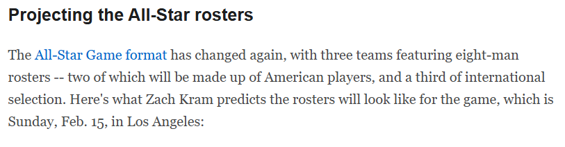 北京时间12月29日,ESPN对全明星阵容进行了最新的预测 ,以下是具体解析——