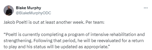 北京时间12月30日,猛龙队今日官宣,球队首发中锋珀尔特尔因下背部伤势,目前正处于高强度康复与力量训练计划的执行阶段,一周后将接受复查。