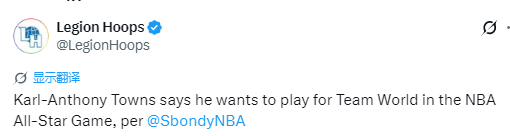唐斯说道:“首先,我希望自己能入选全明星阵容,其次,我希望能被分在世界队。”