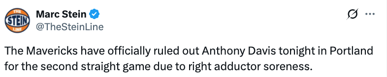 北京时间12月30日,今天上午11点30分,独行侠将客场对阵开拓者。赛前,独行侠官方发布了本场比赛的伤病报告。