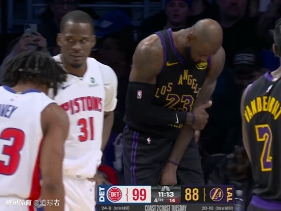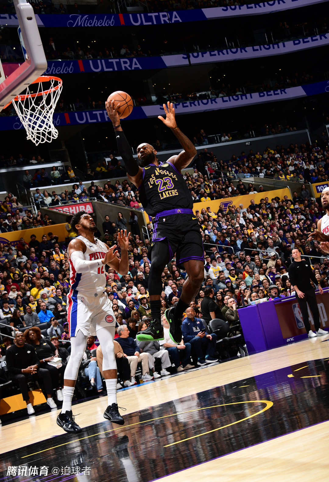 末节,湖人被活塞打出11-4攻势,瞬间落后到15分,詹姆斯三分继续打铁,比赛还剩6分45秒,詹姆斯下场休息;湖人继续失误,活塞继续扩大领先,比赛还剩6分钟,湖人已经落后到20分;由于落后分差太多,湖人众将提前认输,十分失落地坐在替补席,演砸41岁生日夜。