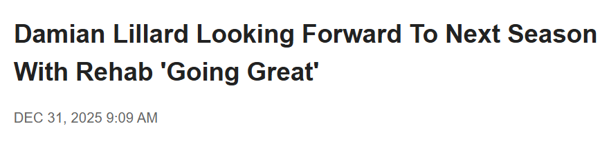 谈到康复情况时,利拉德表示:“进展非常顺利。我觉得这种伤就是必须慢慢来——该花多久就得花多久。最开始的几周,甚至前两三个月,其实都挺让人沮丧的,因为你的行动会受到很大限制。但只要保持耐心,善待自己,去做那些有助于持续进步的事情,你就会慢慢看到隧道尽头的光。”