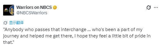 关于自己的名字被命名为夏洛特地区的立交枢纽,库里表示:“这是你一生的成就。有些事情的发生是你始料未及的。你打了一辈子球,倾尽所有去代表父亲和这个社区,这对我来说意义非凡。我觉得最酷的一点在于,我是这样看待它的:任何经过那个立交枢纽或看到那个路牌的人,都是我人生旅程的一部分。这帮助我走到了今天,也让我为此感到一丝自豪。”