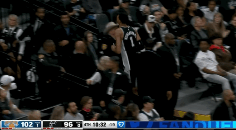 末节比赛,文班亚马重返赛场与尼克斯进行最后决斗,他回归以后为马刺很好地提供护筐,确保球队的后场篮板。然而,文班亚马在本节还剩下10分35秒争抢篮板时,在落地的过程中疑似遭遇膝盖反关节过度伸展,看起来遭遇约基奇此前同类型的伤病。随后文班亚马一瘸一拐地返回更衣室,不过他在下场前还安慰球迷他没事。