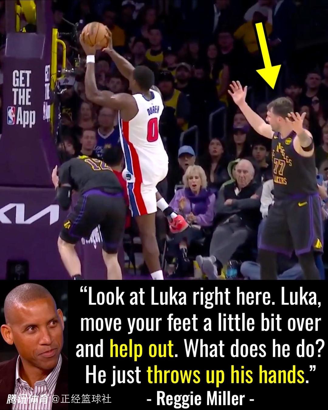 然而,对于东契奇防守的批评,除了球迷之外还有一位名宿,他就是雷吉-米勒。米勒表示:“在杜伦突破拉拉维亚的那个镜头下(湖人队主场惨败活塞队一战),东契奇你稍微移动一下脚步去帮个忙也是可以的。但你做了什么?就只是举起双手。这太让人沮丧了,反正如果我在队里会感到沮丧。我爱东契奇,我承认他很强,不过我想借这点说一说他的防守。”