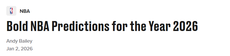 北京时间1月2日,知名美媒Bleacher Report对2026年进行展望,公布了10项大胆预测,以下是具体内容——