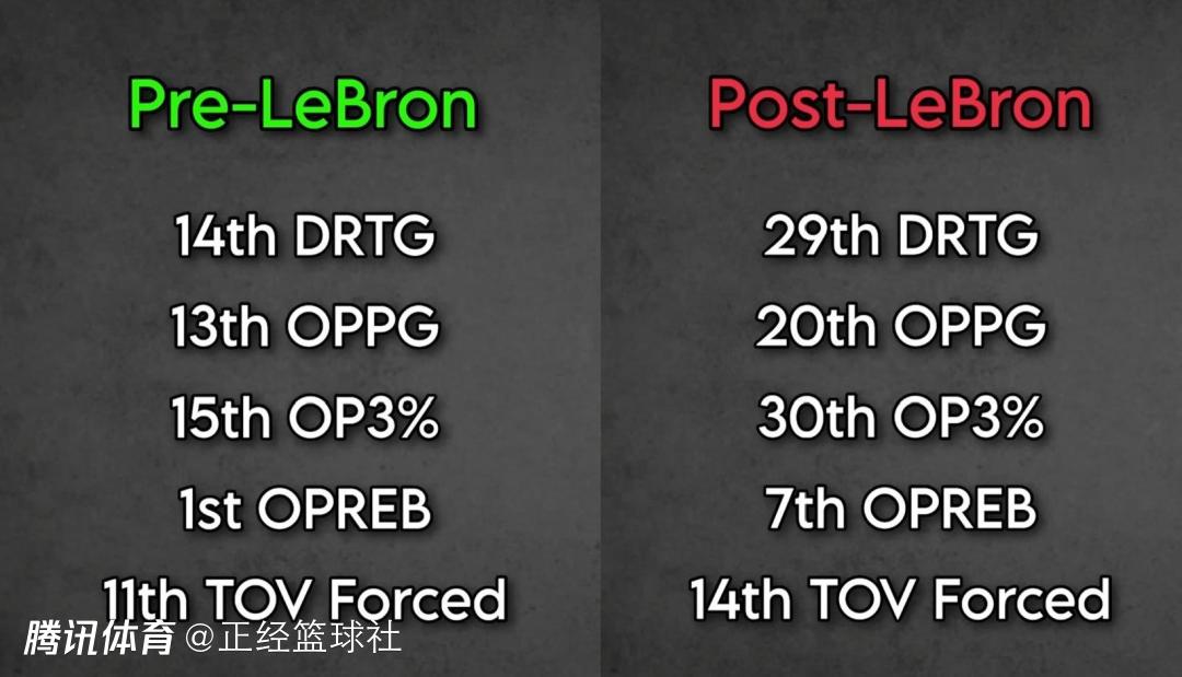 北京时间1月3日,NBA常规赛继续进行。湖人队近期成绩非常不理想,对此美媒列举了六组数据,分别是詹姆斯复出前和复出后,可以看到多项数据都有非常明显的下滑。