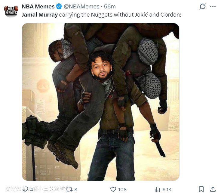 美媒NBA Memes,穆雷一人扛起了没有戈登、约基奇等人的掘金。