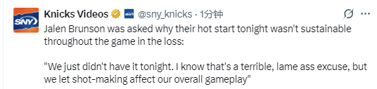 当被问及为何球队今晚的良好开局未能延续并最终失利时,布伦森表示:“说实话,我也不清楚为何会如此……不瞒你说,我们今晚就是不在状态。