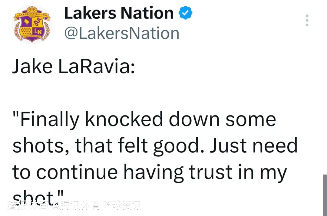 拉拉维亚: 没有什么比这更有趣的了。和这些天赋异禀的家伙一起打球,同时我自己也找到了节奏。我今晚感觉真的很棒。