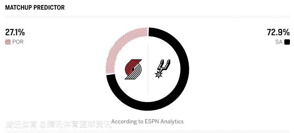 开拓者27.1%,马刺72.9%