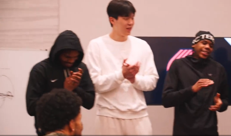 会议结束前,全队还一起给寿星阿夫迪亚送上了中英文两版生日歌,杨瀚森依旧成为了中文版的领唱担当。