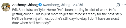 斯波尔斯特拉在谈及希罗的伤情时表示:“他一直都在刻苦训练,状态也在不断回升。目前的调整更多是为了让他做好心理准备,迎接下一阶段的比赛。他会随队出征,但具体的复出时间仍需逐日观察,我暂时无法给出确切的回归日期。”