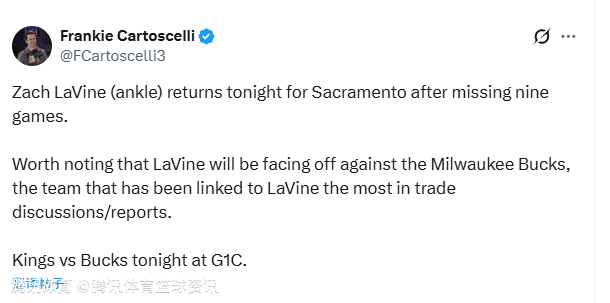 北京时间1月5日,NBA常规赛继续进行,国王对阵雄鹿。国王球星拉文(脚踝伤势)在缺阵九场比赛后,将于本场比赛中迎来复出。