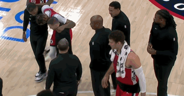 从视频回放中可以看到,当时小琼斯持球过半场,普里查德尝试抢断,结果两人都摔倒,普里查德扑球时疑似压到了小琼斯的腿部,后者显得极为痛苦,一直抱着腿,双手还砸地板。