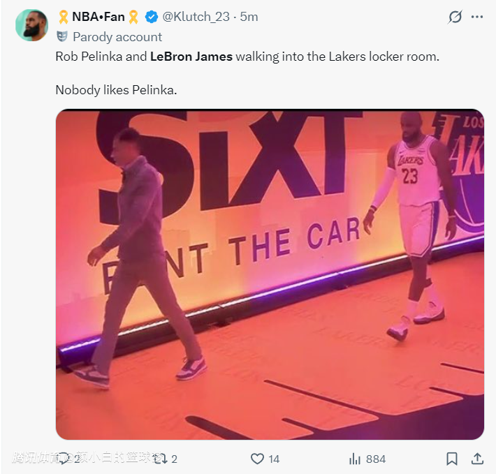 湖媒晒出詹姆斯与佩林卡一同走进球队更衣室并评论:根本没有人会喜欢佩林卡。