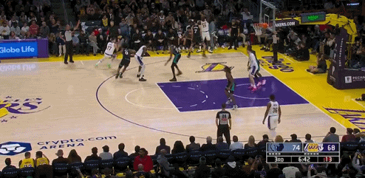 第三节比赛中,詹姆斯两次攻击篮下得手,其中一球更是暴扣得手,本节结束前,詹姆斯命中今天个人第一记三分,单节再次交出7分2篮板3助攻的全面表现。末节比赛,詹姆斯很快造犯规命中罚球,之后又打成2+1,可惜加罚没有命中。随后詹姆斯三分命中缩小到仅差1分,紧接着詹姆斯再次篮下得手,并且多次助攻队友得手,单节拿到11分3篮板3助攻,带领湖人队拿到了胜利。