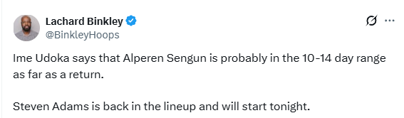 北京时间1月6日,火箭主帅乌度卡表示,申京预计要伤停10-14天,亚当斯重回阵容,今天比赛将首发出场。在对阵独行侠的比赛中,申京落地时踩到加福德的脚受伤,开局64秒便伤退了。详情稍后。