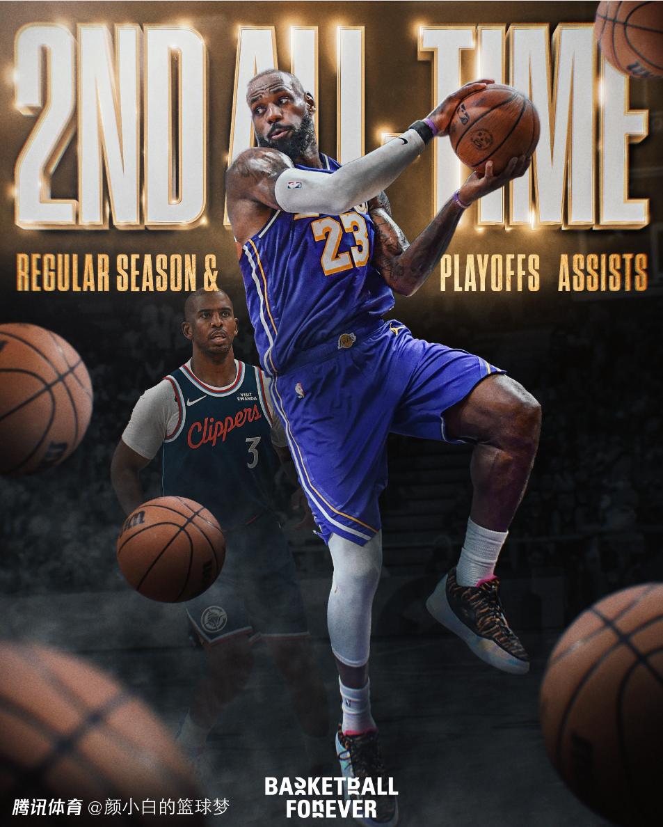 此役勒布朗的历史总助攻还超过了克里斯-保罗升至历史第二位,他也是NBA历史首位得分第一+助攻第二的球员,41岁的他即将打破51000分大关。