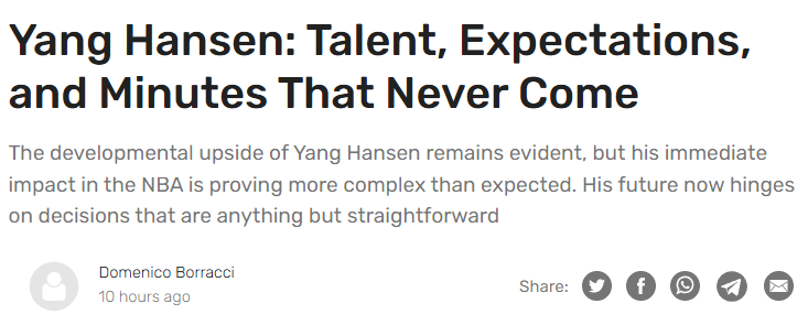 北京时间1月6日,美媒Dukest撰文解读杨瀚森的现状,以下是相关内容——