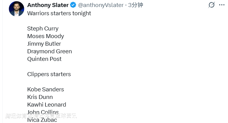 北京时间1月6日,NBA常规赛继续进行,勇士队对阵快船队。赛前,双方公布了本场比赛的首发名单。