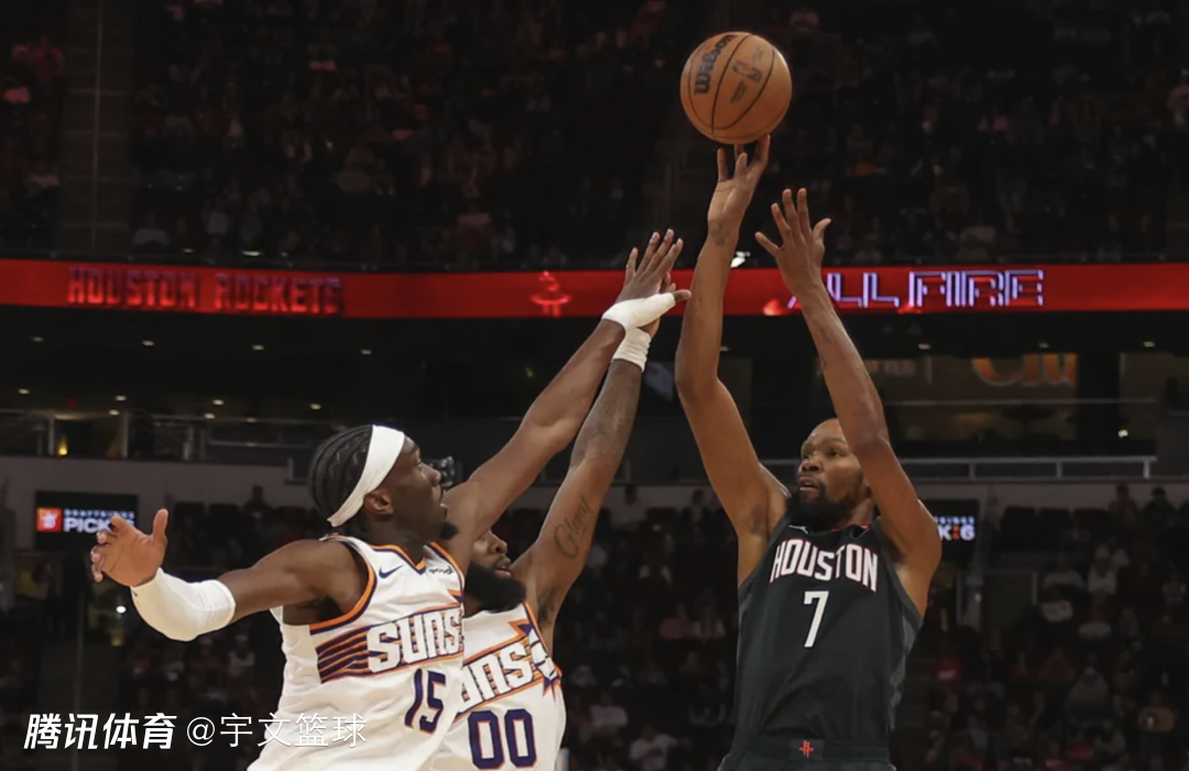 虽然杜兰特手感不好,但是他很好地弥补申京的空缺为球队提供护筐,单节送出5分5篮板3助攻的全面数据,在进攻端与太阳抗衡,火箭首节比赛落后太阳4分。