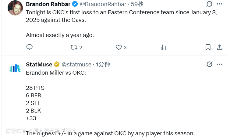 此外,这也是雷霆队接近1年的时间里首次在常规赛中输给东部球队。上一次他们在常规赛中输给东部球队,还要追溯到去年1月对阵骑士队的比赛。