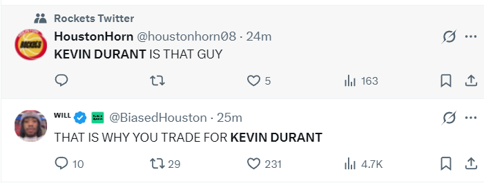 杜兰特的表现让休斯顿媒体为之陷入癫狂:1.杜兰特就是我们要的那个人;