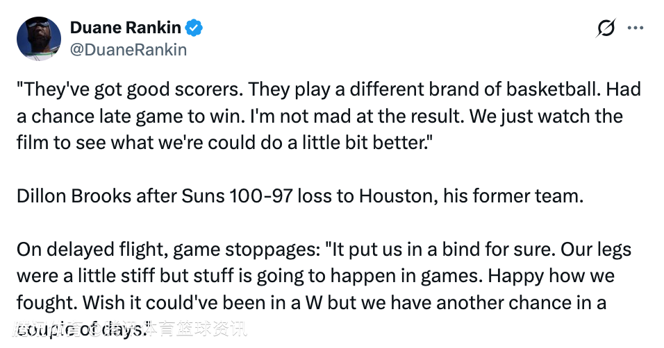 北京时间1月6日,NBA常规赛,太阳以97-100惜败火箭,此役狄龙面对老东家拿到15分4篮板2助攻,赛后他接受了媒体的采访。