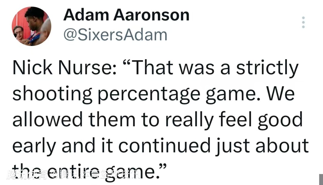 纳斯表示:“这纯粹是一场关于投篮命中率的比赛。我们让他们在比赛一开始就找到了手感,而这种火热的状态几乎贯穿了整场比赛。”