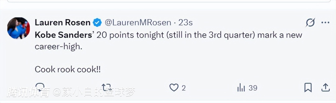 快船记者Lauren Rosen:桑德斯三节拿到20分已经创造生涯新高,微波炉球员。