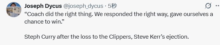 在谈到自己的抛投进球后被取消以及科尔被驱逐的原因时,库里表示:“裁判没给我解释。一般来说,当我完成出手并命中后,如果这是一个可吹可不吹的五五开判罚,裁判通常都会选择让比赛继续进行,不会过多干预。我从来没见过这种延迟判罚的情况,先是判定进球有效,随后又改口称对方犯规、进球作废。”