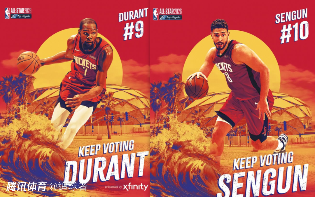 火箭官方晒海报为杜兰特和申京拉票,配文写道:次轮球迷投票结果公布,继续投票,把他们投进前五之列。