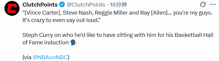 “文斯-卡特、史蒂夫-纳什、雷吉-米勒还有雷-阿伦……你们都是我最想并肩的人。这话即便只是说出口,都觉得不可思议。”库里说道。