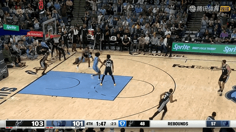 第四节还剩1分47秒时,威尔斯上篮被福克斯封盖,比分仍然是103:101,这次关键封盖挡住了灰熊的追分势头。