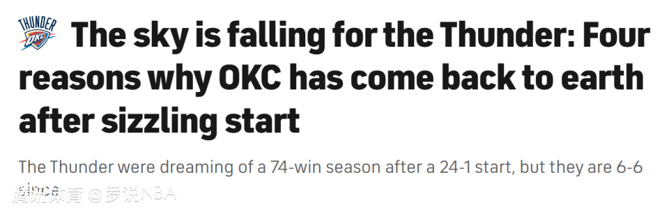 但眼下,俄克拉荷马城的天,似乎真的要塌了,所有人都陷入了焦虑。知名美媒CBS深入剖析雷霆队近期战绩滑坡的原因,细数那些可能阻碍他们卫冕之路的短板——