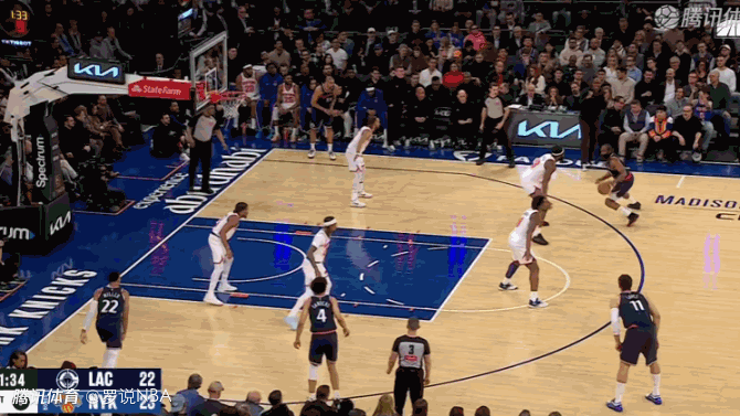 易边再战,阿奴诺比扣篮,祖巴茨补篮得分,阿奴诺比打成2+1,祖巴茨勾手再中。哈登突破得手,布里奇斯也还以颜色。布伦森三分命中,祖巴茨补扣得手,阿奴诺比三分也中,唐斯打成2+1,亚布塞莱三分命中,尼克斯反超快船。莱昂纳德、科林斯、巴图姆接连得分,布伦森也连拿6分。哈登、洛佩斯三分命中,克拉克森中投得分,罗宾逊补扣。克拉克森打成2+1,布里奇斯上篮得分。三节战罢,尼克斯90-87领先快船。