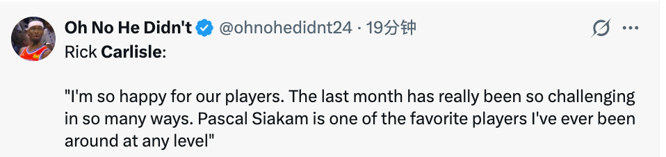 卡莱尔表示:“我真为我们的球员感到高兴。过去的一个月真的在很多方面都充满了挑战,但我们有一群非常棒的家伙。他们无论顺境逆境都在继续战斗。西亚卡姆是我在任何级别执教过的最喜欢的球员之一,他简直太棒了。他用自己的意志力在这场比赛中留下了属于他的印记。最后那个球,他投进后让我们反超1分,那是一个至关重要的进球。”