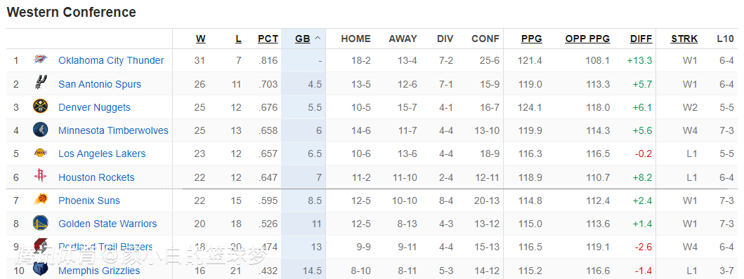 森林狼凭借这一波4连胜已经反超湖人升至西部第四的位置,火箭则掉至西部第六。