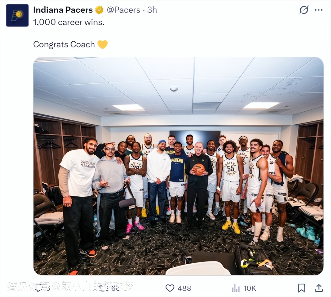 卡莱尔这千胜,独行侠就贡献了555胜,步行者345胜,活塞100胜,诺维斯基、东契奇等人都为卡帅发来了祝贺。