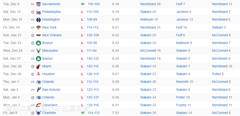 2025年12月9日击败国王后卡莱尔就拿到999胜,结果步行者吞下了一波13连败,这是步行者队史最长的连败,大家可以看到这一波13连败有5场分差只有8分左右,甚至有三场分差只有2分,说明步行者在决胜时刻就有意放水输球。