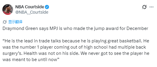 “小波特现在是交易流言里最热门的名字之一,原因很简单:他所在的球队目前表现并不理想,而他个人却打出了非常出色的篮球。当一支球队开始考虑重建,而阵中又有像小波特这样表现亮眼的球员时,他们通常会选择把他交易出去,换取更多筹码。”